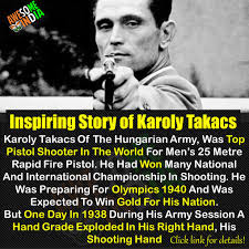 This story is from 1938, about person named KΓ‘roly TakΓ‘cs from country Hungary. He was in Hungarian army. He was best pistol shooter in his country. All National championships were on his name. And all others peoples were almost confirmed that he will only win the 1940's Olympic's in pistol shooting. He was trained from many years and he had only one dream, one aim that - "My Right hand should be world's best shooting hand". And everything was absolutely fine. Only 2 years were left. In 1938 there was a army training camp as he was in army, an accident took place, the hand ( His Right hand) in which he dreamed to win gold medal, a hand granite blasted and he lost his hand very badly.Overnight his dream's, his focus, everything was finished. Now imagine if we were in his place, we would be surrendered or we would blame the God for this, and sit and cry and everyone around us have said " Ya we can understand your situation, don't cry, control your self". But this was for other peoples , not for Karoly.